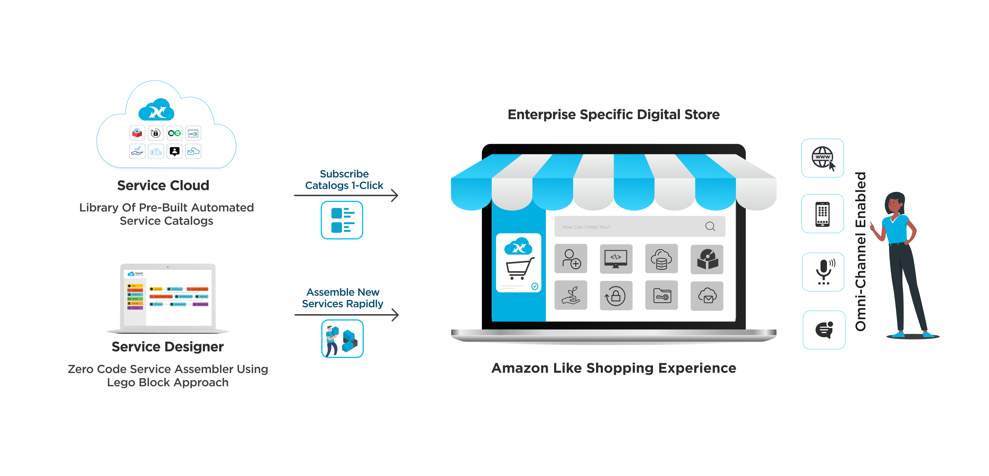 Ordering services in Enterprises have never been easier. Build your exclusive Digital Store of automated services by subscribing from our Service cloud. While users get the benefit of self-service with zero touch delivery, Enterprise admins can centrally control and govern the service portfolio. Digital Store serves to balance the needs of end-users and admins through this unified layer of consumption.